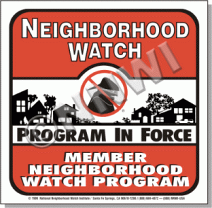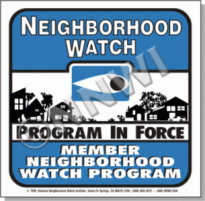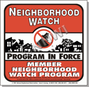 [1] The first layer being at the STREET LEVEL – NNWI’s street warning signs put ALL on Notice that a Neighborhood Watch Program is in Force. Our customized signs allow customization with Emergency Call 911/DISPATCHES PHONE NUMBER and AGENCY NAME – This customization step send a strong message and can shorten response times;