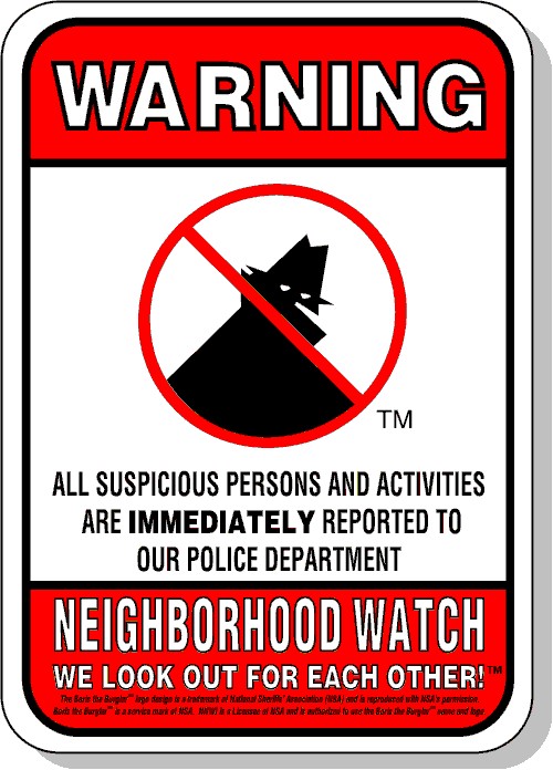 National Neighborhood Watch Institute Reflective Aluminum Warning Sign. Boris the Burglar, Police, 12 x 18 Medium Reflective Aluminum Warning Sign. Premium reflective aluminum construction for maximum nighttime visibility. Suitable for exterior mounting. Sold individually. For agency and municipal procurement.